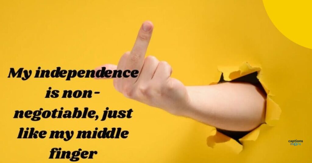 People use middle finger captions to show boldness, attitude, and a fearless vibe.